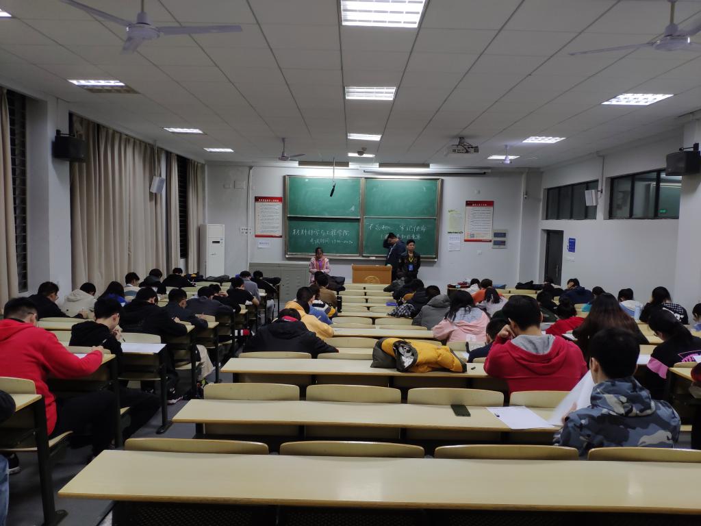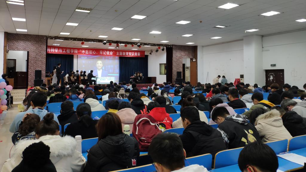 本网讯(通讯员 柯贤忠)为进一步提升“不忘初心、牢记使命”主题教育全方位、多层次理论学习效果,营造“以赛促学、以学促做”的良好学习氛围。11月27日下午,材料科学与工程学院在文科楼模拟法庭举行“不忘初心、牢记使命”主题教育知识竞赛决赛。学院党委书记李国林、党委副书记肖平、全体辅导员、学院本科生和研究生党团员代表200余人观看了比赛。